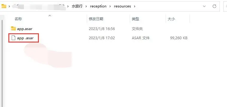 选择到**.exe文件,点击确定即可开始解包。 封入****app.asar,在下图路径会有一个很大的app.asar**文件: