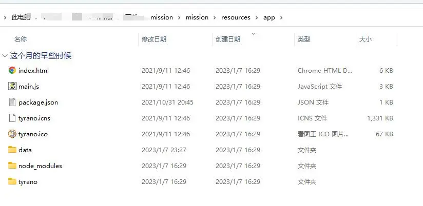 很明显的krkr命名文件,并且目录内会有很大的**.xp3文件,这个就是需要解压的游戏数据包。 ②解压步骤 与上面的嵌合体紫一样用GARbro解包。 Tyrano引擎 ①引擎辨认: 这类引擎有三种形式(水树凯三连发): 不封包,下图路径可以看到tyrano** 、data、node_modules文件夹,index.html 、package.json文件: